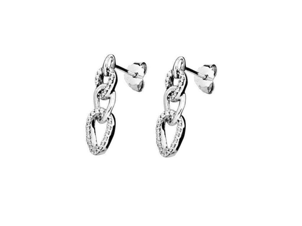 Náušnice Aisha jsou tvořeny propojenými ovály, z nichž některé jsou osázeny jemnými kubickými zirkony. V kombinaci s lesklým stříbrným povrchem tvoří decentní, ale elegantně zářivý doplněk — takový, který přitáhne pozornost jemně a stylově.